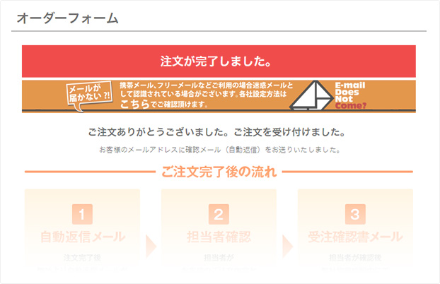 - ご登録いただいているメールアドレスに自動返信の「注文完了メール」が届きます。