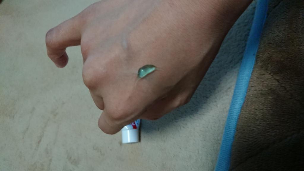 青いジェルで、香水のような匂いとレビューがありましたが彼氏にはお菓子のような匂いで可愛い。何塗ってるの?と聞かれました。