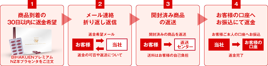 ・返金対象商品名:BIHAKUEN プレミアムニュージーランド羊プラセンタ 1箱